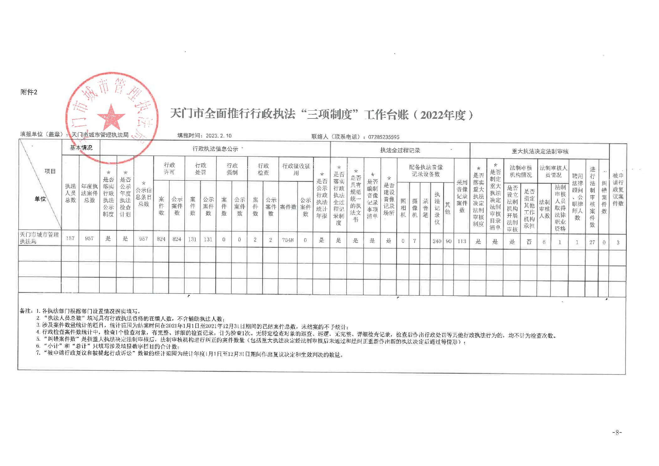 天门市城市管理执法局全面推行行政执法“三项制度”工作台账(2022年度)