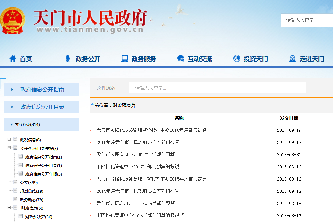 天门市财政局2017年度政府信息公开工作年度报告