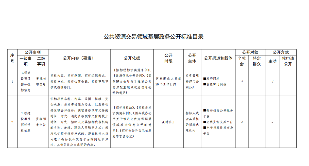 完整公共资源交易领域基层政务公开标准目录见附件!