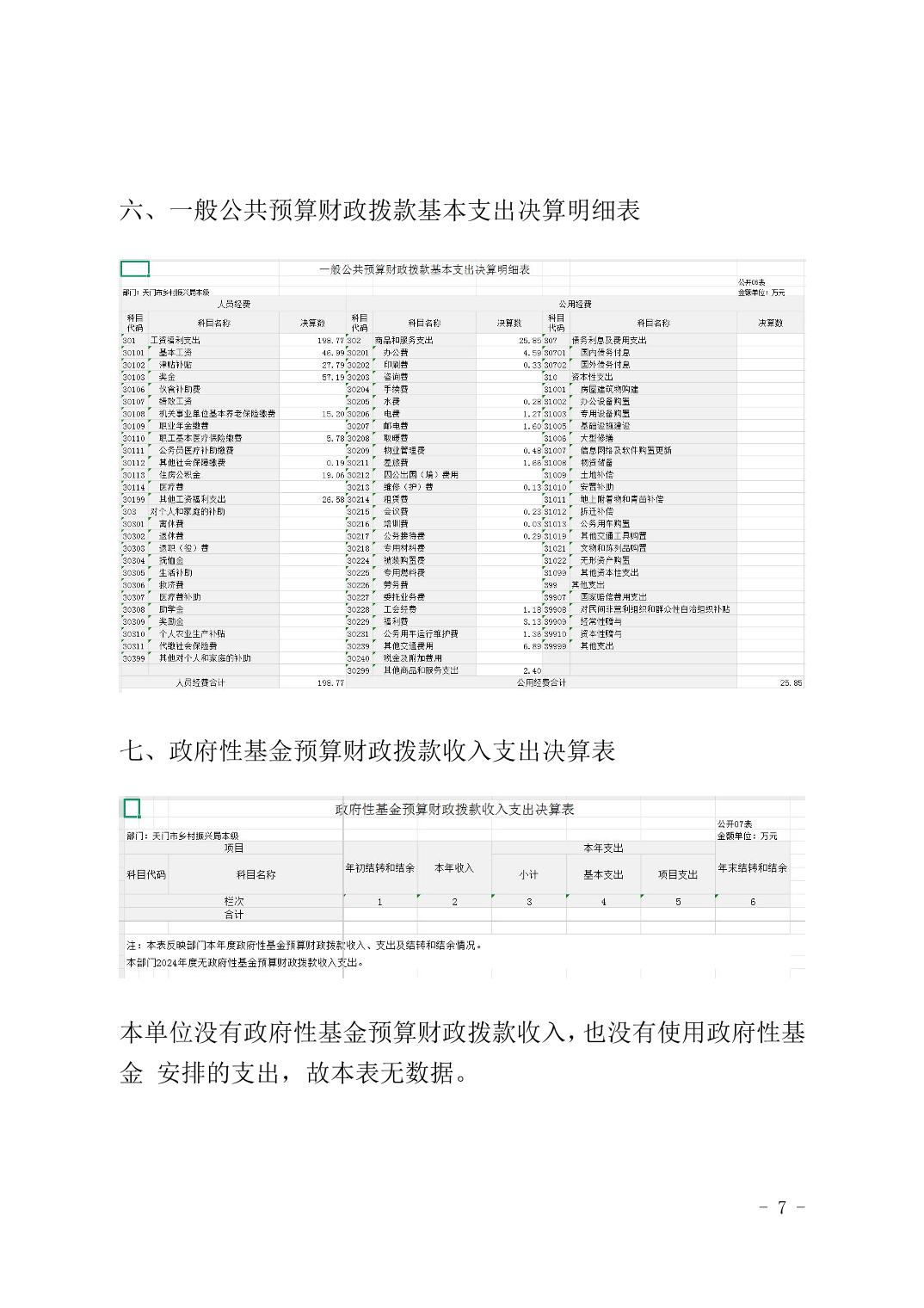 天门市乡村振兴局2024年度部门决算(本级)