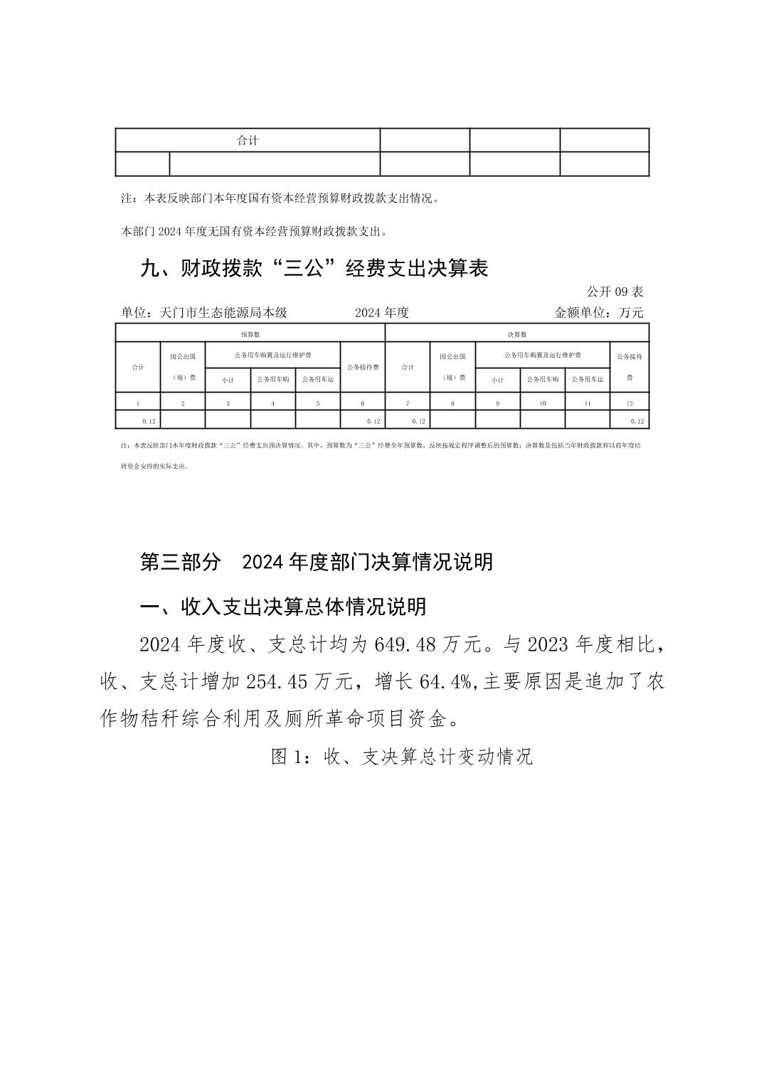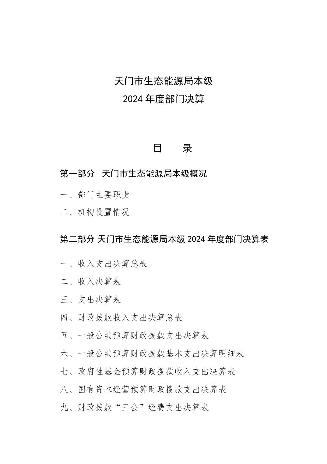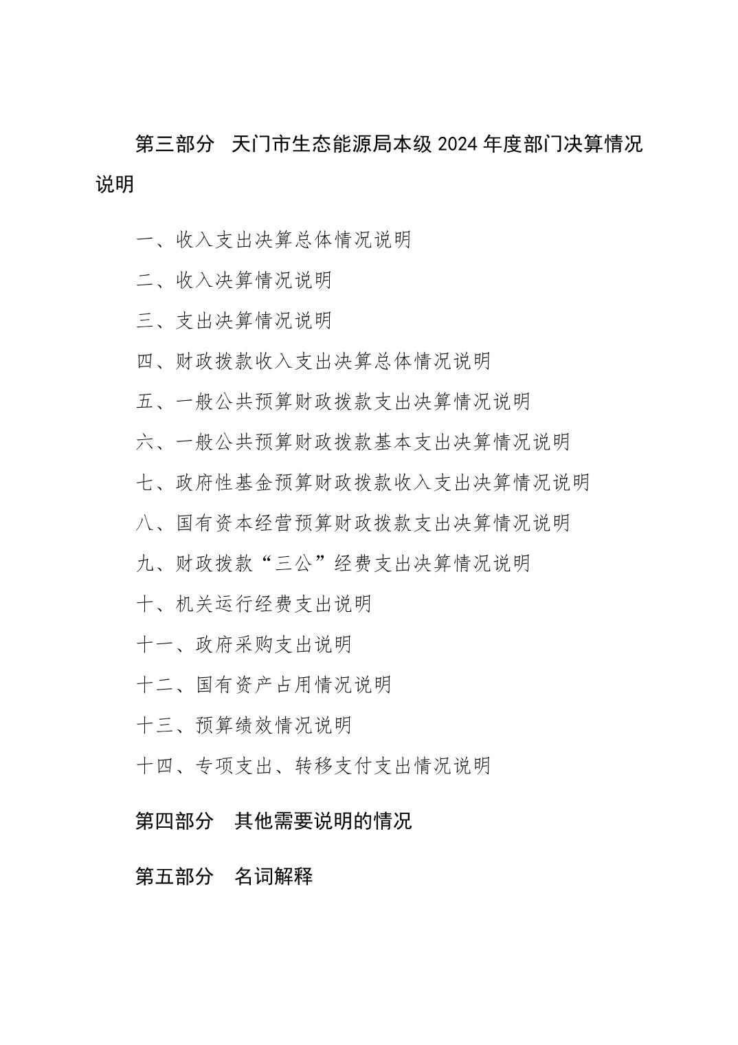 天门市生态能源局本级2024年度部门决算公开