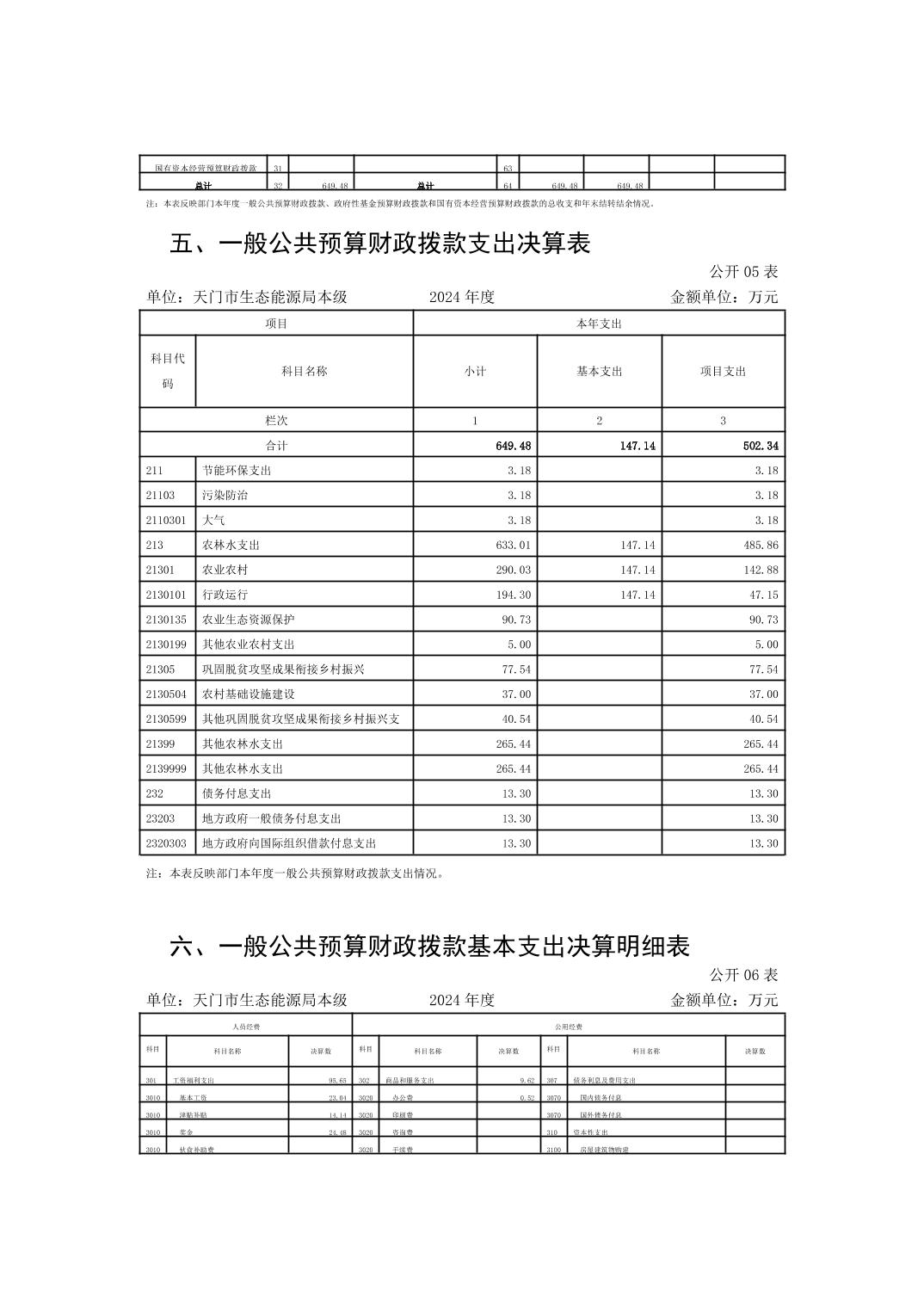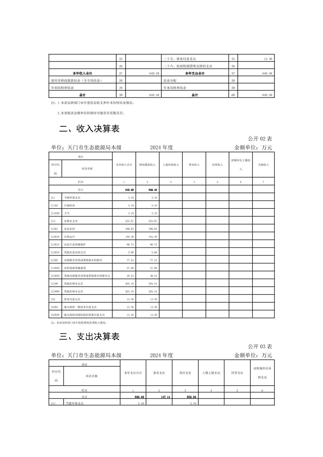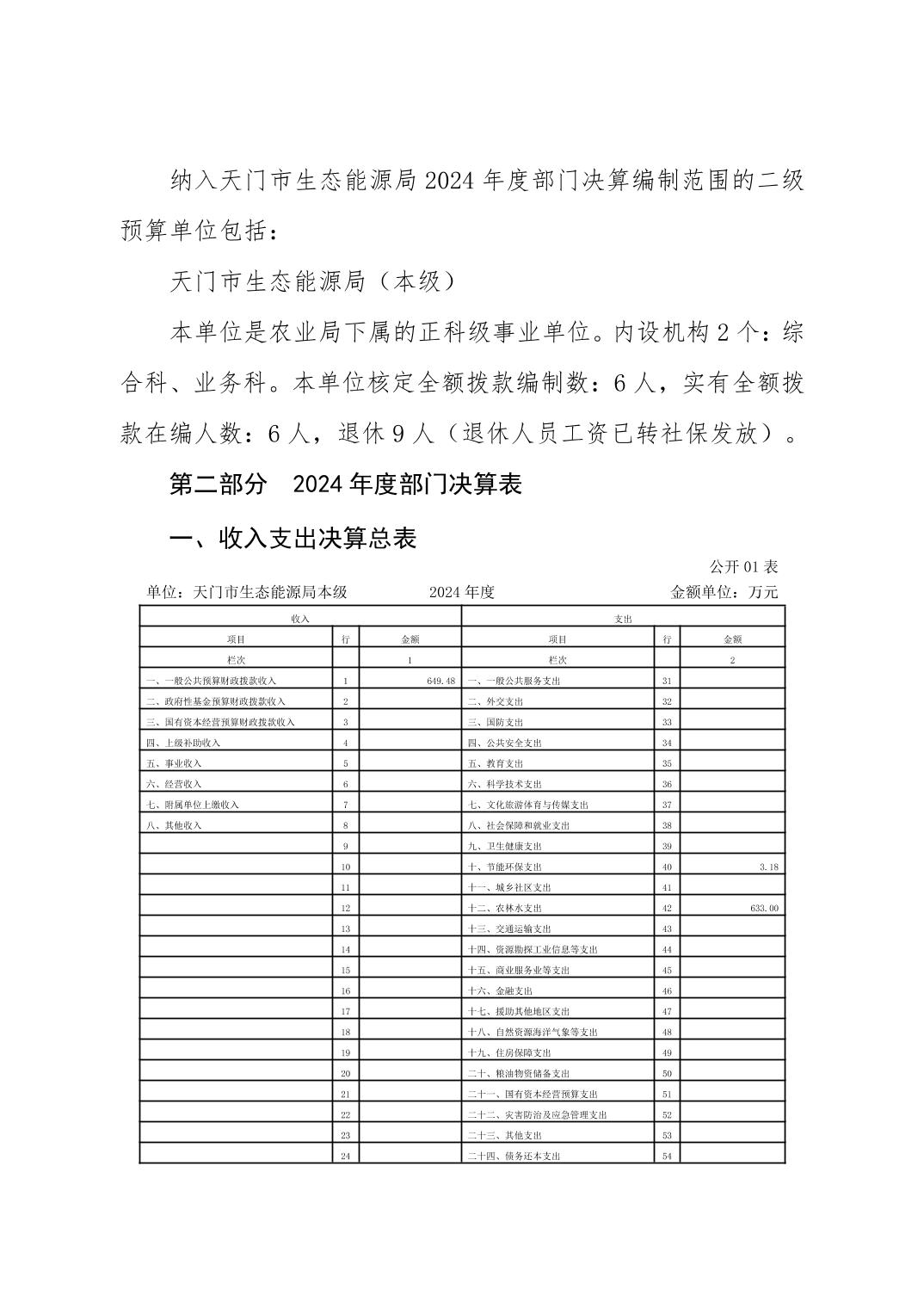 天门市生态能源局本级2024年度部门决算公开