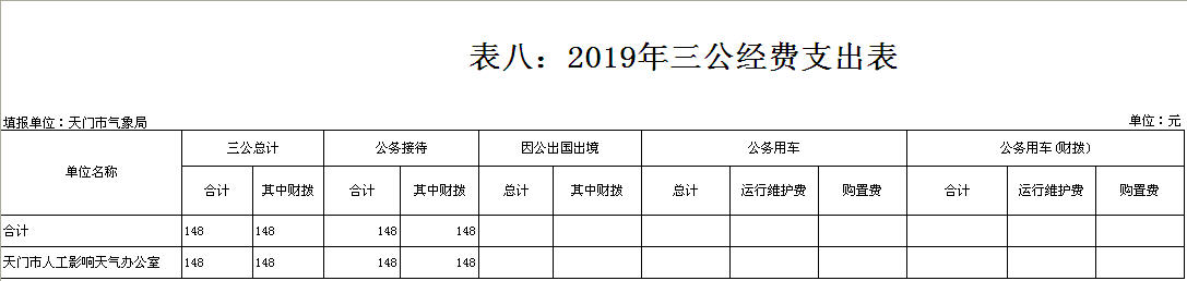 2019年“三公”经费预算0.01万元,较上年预算减少0万元,下降0%。其中:公务接待费0.01万元,较上年减少0万元,下降0%;因公出国(境)经费0万元,较上年减少0万元,下降0%;公车运行维护费0万元,较上年减少0万元,下降0%。