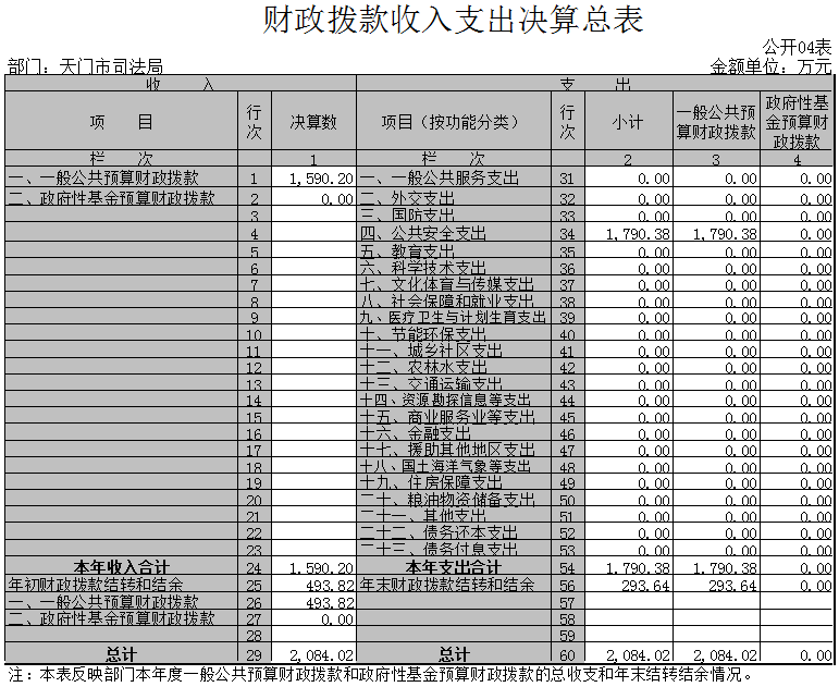 天门市司法局部门决算包括:局本级决算,无二级单位决算。