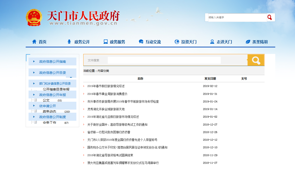 天门市外事侨务旅游局2018年政府信息公开工作年度报告