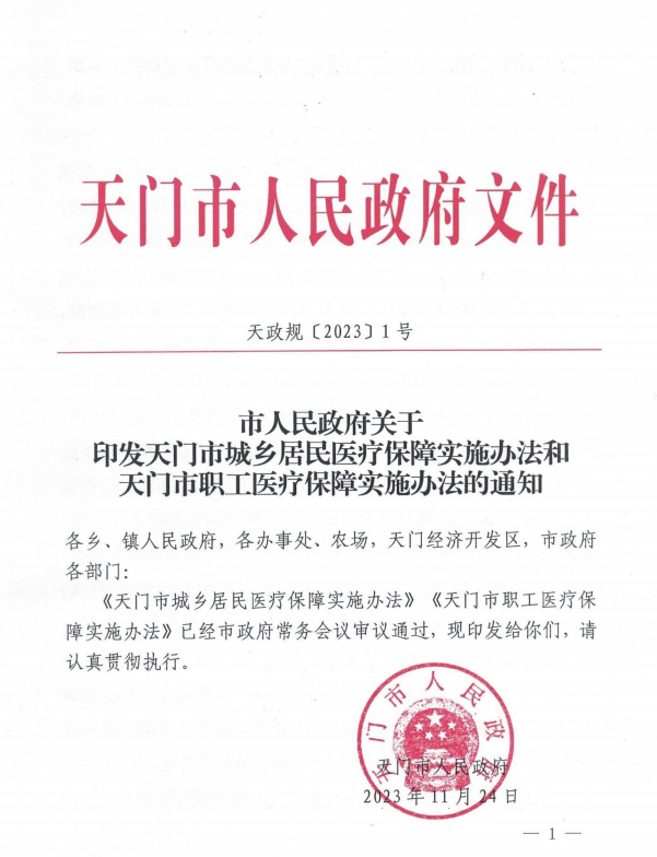 市人民政府关于印发天门市城乡居民医疗保障实施办法和天门市职工医疗保障实施办法的通知