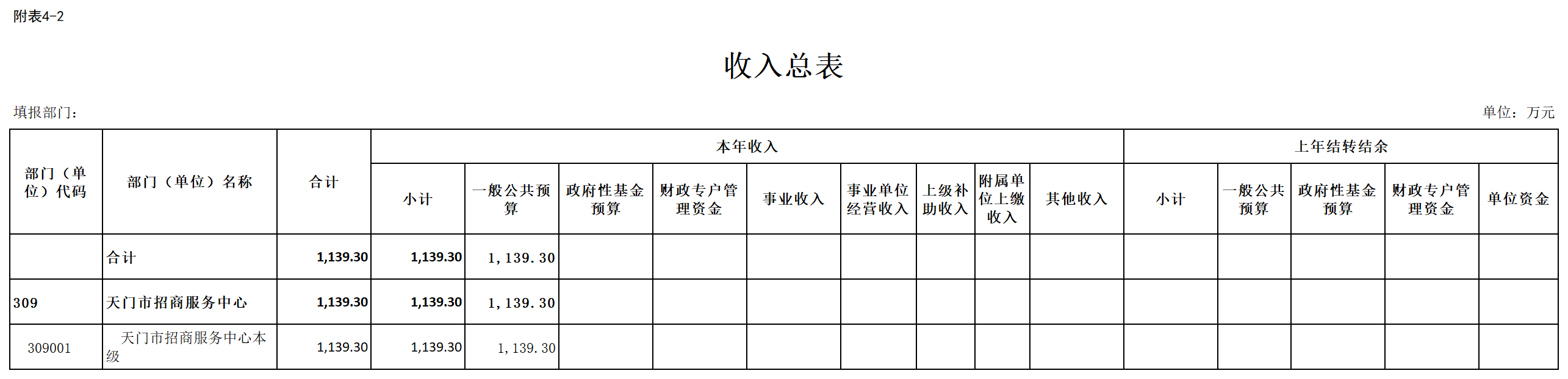 二、部门收入总表