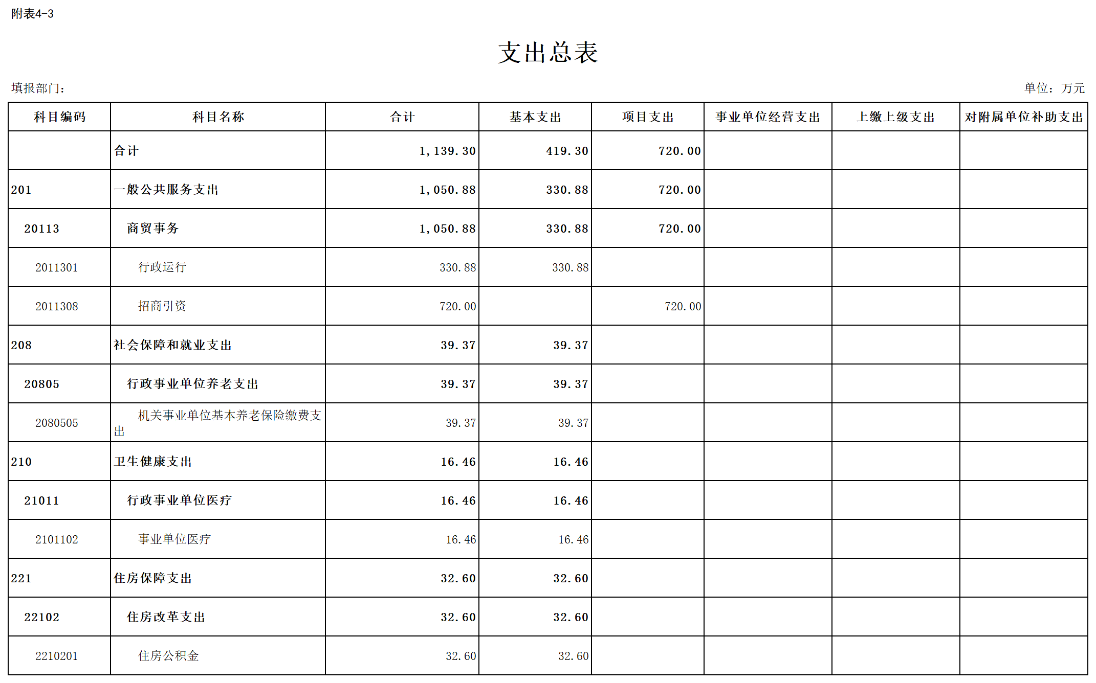 三、部门支出总表