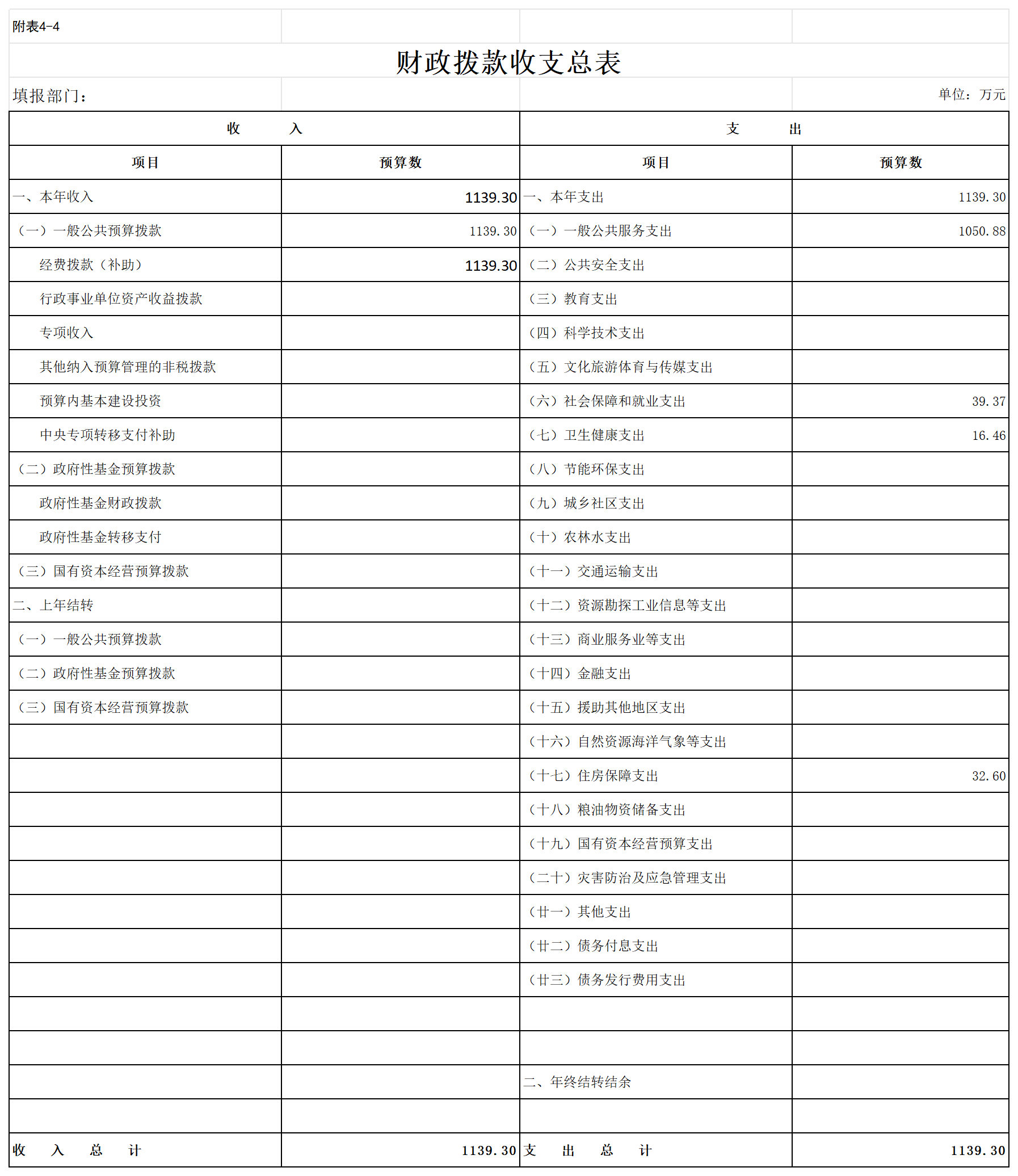 一、部门收支总表