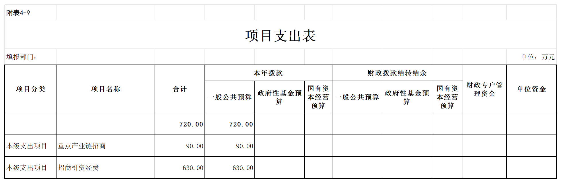 九、项目支出表