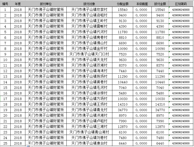 佛子山镇2018年度困难群众基本生活救助补助资金