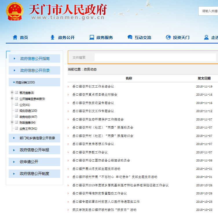 2018年,我镇通过政府网站公开信息239条,其中领导信息1条,内设机构1条,下属单位1条,公开指南目录年报2条,公文17条,规划总结1条,政务动态150条,财政信息2条,业务工作64条。12月13日,岳口镇党委副书记、镇长欧阳宏卫做客天门网访谈栏目,就我镇“突出发展和民生两大主题,建设江汉平原明珠新城”这一主题畅谈。